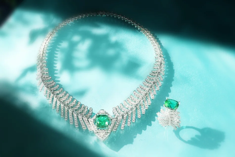 The exhibition also marks a collaboration with parent brand FERRI JEWELRY to launch the designer series “Sunlight” and “Bloom Waltz.” Diamond Bank curated exceptional loose stones, which were then custom-fitted by FERRI’s design team to accentuate their natural brilliance. While “Sunlight” utilizes geometric and diagonal lines to evoke the play of natural light, “Bloom Waltz” employs fluid curves and architectural structures to mirror the elegance of a couture gown.
